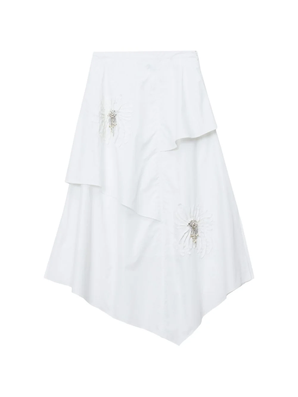 floral ruffled midi skirt Highlights - White - Floral detail - Asymmetric hem - Tiered Imported Composition Cotton 100% Washing instructions Specialist Cleaning