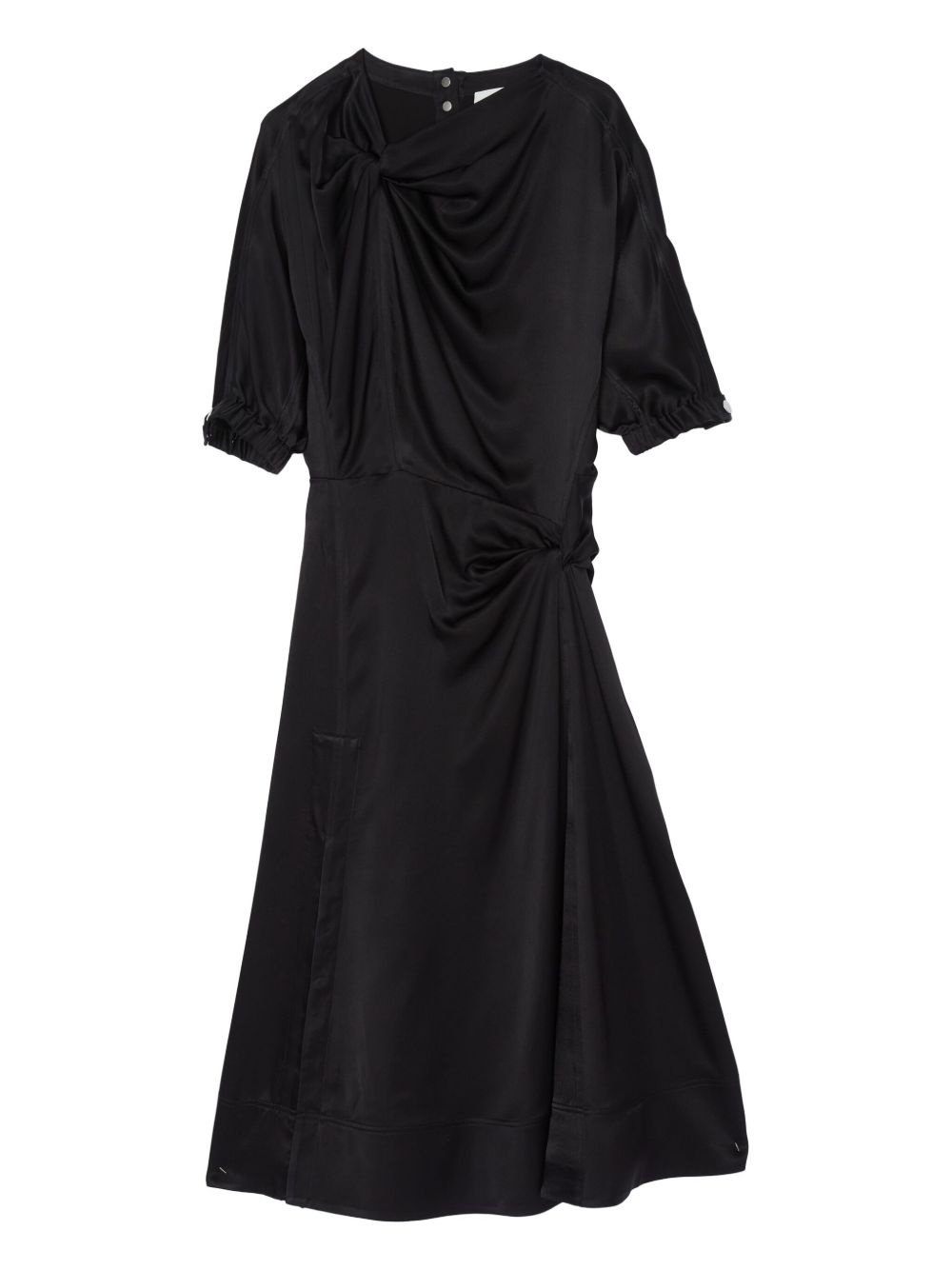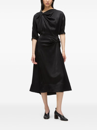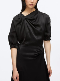 gathered-neckline midi dress Highlights - Black - Gathered neckline - Short sleeves - Fitted waistline Imported Composition Viscose 100%
