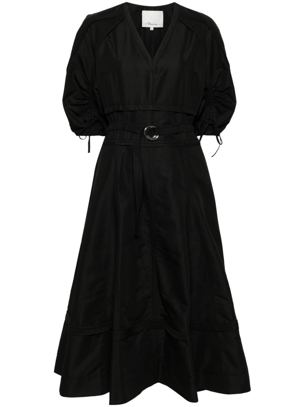 gathered sleeves dress Highlights - Black - Cotton/recycled polyester - Gathered sleeves - Drawstring waist - V-neck - Straight hem Imported Composition Body: Cotton 57%, Polyester 43% SIZE & FIT Model measurements Height 5 ft 10 in(1.77 m) Bust/Chest 31.49 in(80 cm) Hips 35.43 in(90 cm) Waist 25.19 in(64 cm) FittingInformation Designed for a close fit at the chest and waist with a loose fit at the hip The partially elasticated waistband offers increased movement and comfort at the waist Made from a midweight non-stretch fabric