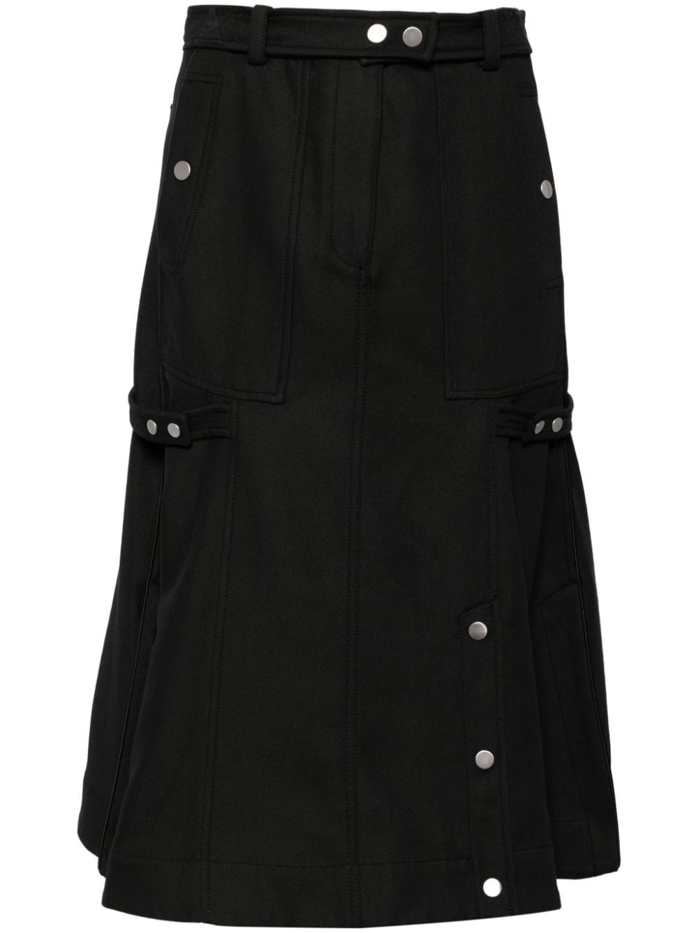 godet utility skirt Highlights - Black - Cotton - Hook and zip fly fastening - Press-stud fastening pocket - Rear patch pocket - Short side slits - Straight hem Imported Composition Cotton 70%, Viscose 21%, Wool 9% Washing instructions Dry Clean Only