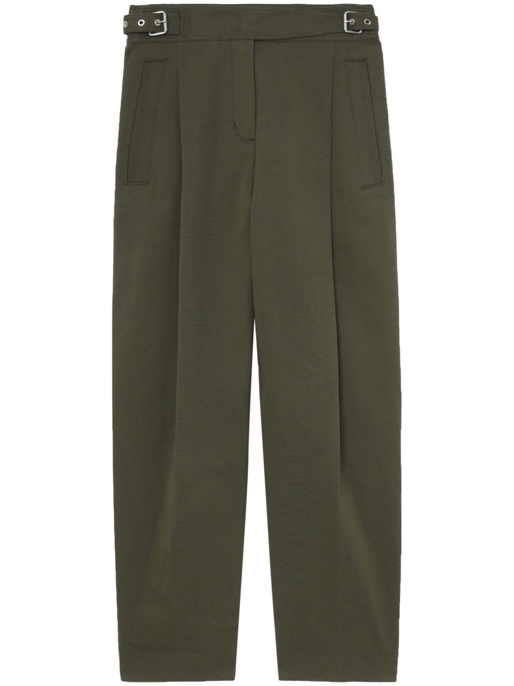 high-waisted belted cropped trousers Highlights - Khaki - Cotton - Silver-tone hardware - High-waisted - Belted waist - Concealed front fastening - Two side inset pockets - Rear button-fastening pocket Imported Composition Cotton 100% Washing instructions Read Manufacturer Guidelines
