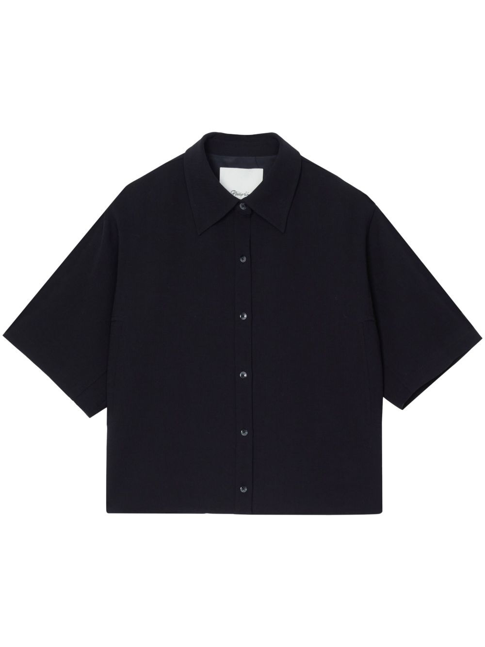 knitted shirt Highlights - Midnight blue - Front button fastening - Classic collar - Short sleeves Imported Composition Wool 100%