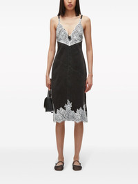 lace-trim denim slip dress Highlights - Black/white - Cotton - Denim - Lace trim - V-neck - Adjustable spaghetti straps - Rear zip fastening - Side slits - Knee-length - Straight hem Imported Composition Cotton 100% Washing instructions Read Manufacturer Guidelines
