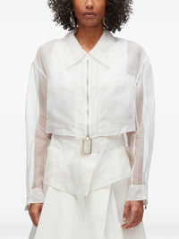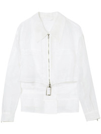 layered belted silk jacket Highlights - Ivory white - Silk - Organza - Layered design - Straight-point collar - Front zip fastening - Belted waist - Long sleeves - Peplum hem Imported Composition Silk 100%