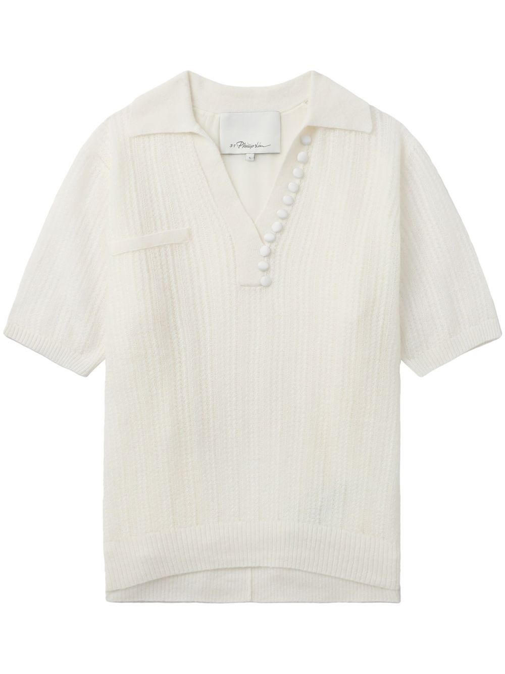 layered polo top Highlights - White - V-neck - Polo collar - Short sleeves - Decorative button detailing Imported Composition Lyocell 67%, Polyamide 33%