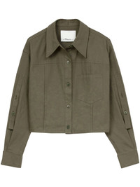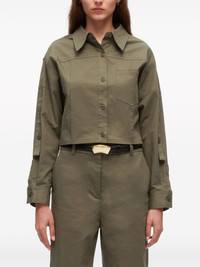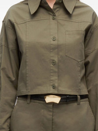 long-sleeve cropped shirt Highlights - Olive green - Stretch-cotton - Cropped - Classic collar - Front button fastening - Long sleeves - Buttoned cuffs - Chest patch pocket - Straight hem Imported Composition Cotton 97%, Elastane 3% Washing instructions Specialist Cleaning