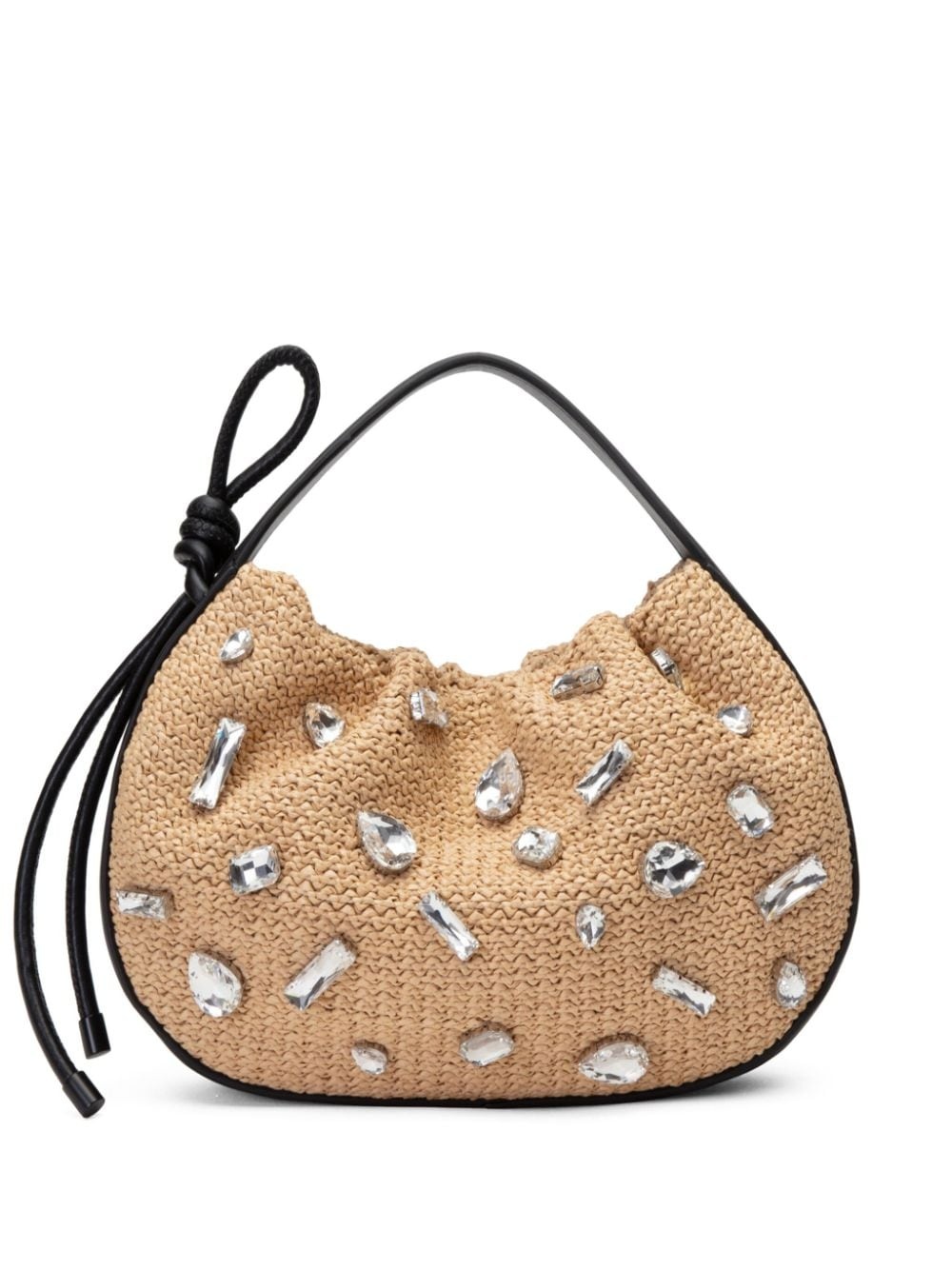 mini Origami tote bag Highlights - Beige - Interwoven design - Leather trim - Crystal embellishment - Knot detailing - Single top handle - Main compartment Imported Composition Outer: Lamb Skin 100%, Polypropylene 80%, Polyester 20% Lining: Cotton 100% SIZE & FIT Measurement DEPTH 6 in(15.2 cm) HANDLE 6 in(15.2 cm) HEIGHT 11 in(27.9 cm) WIDTH 11 in(27.9 cm)