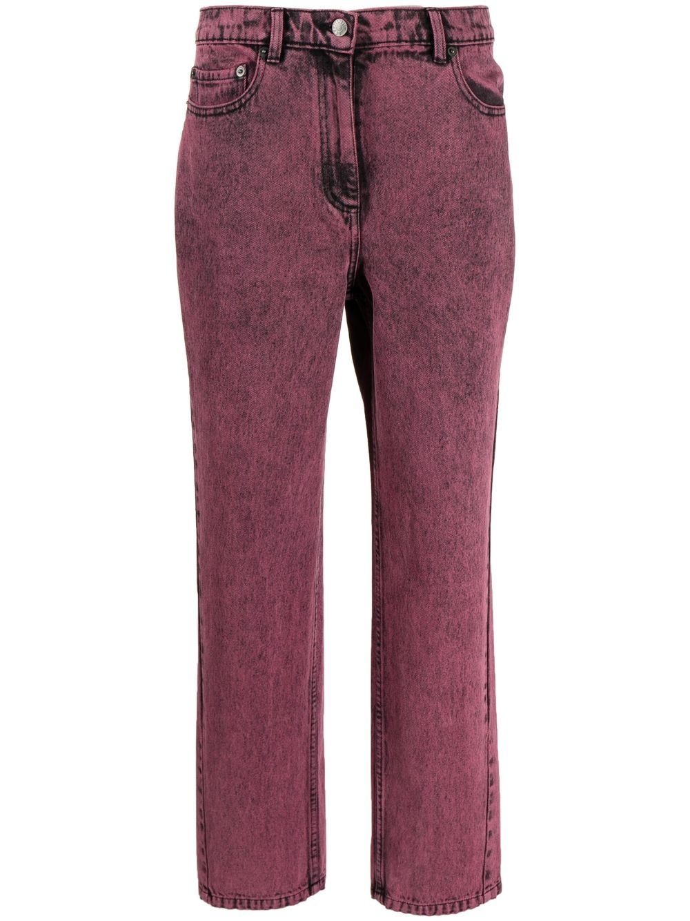 overdyed boyfriend jeans magenta cotton high waist belt loops front button and zip fastening classic five pockets boyfriend cut Imported Composition Cotton 100% SIZE & FIT Model measurements Height 5 ft 10 in(1.77 m) Bust/Chest 31.49 in(80 cm) Hips 35.43 in(90 cm) Waist 25.19 in(64 cm) FittingInformation Designed for a straight-leg fit, these trousers allow for a close fit at the waist and an unrestricted, comfortable fit over the leg Sturdy and hard-wearing, this denim piece offers no stretch Washing instructions Dry Clean Only