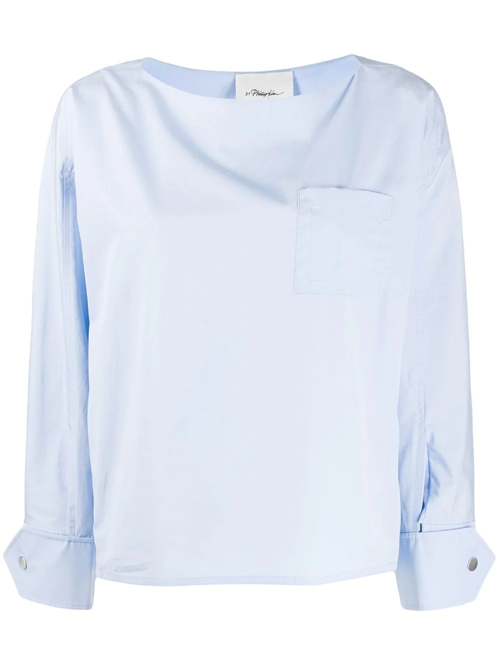 patch-pocket long-sleeve blouse A cotton blouse is a wardrobe staple. This long-sleeve piece from 3.1 Phillip Lim is here to save you from those 'nothing-to-wear' days. You can thank it later. Highlights - Oxford blue - Cotton - Round neck - Chest patch pocket - Long sleeves - Snap button-fastening cuffs - Straight hem Imported Composition Cotton 100% Washing instructions Dry Clean Only