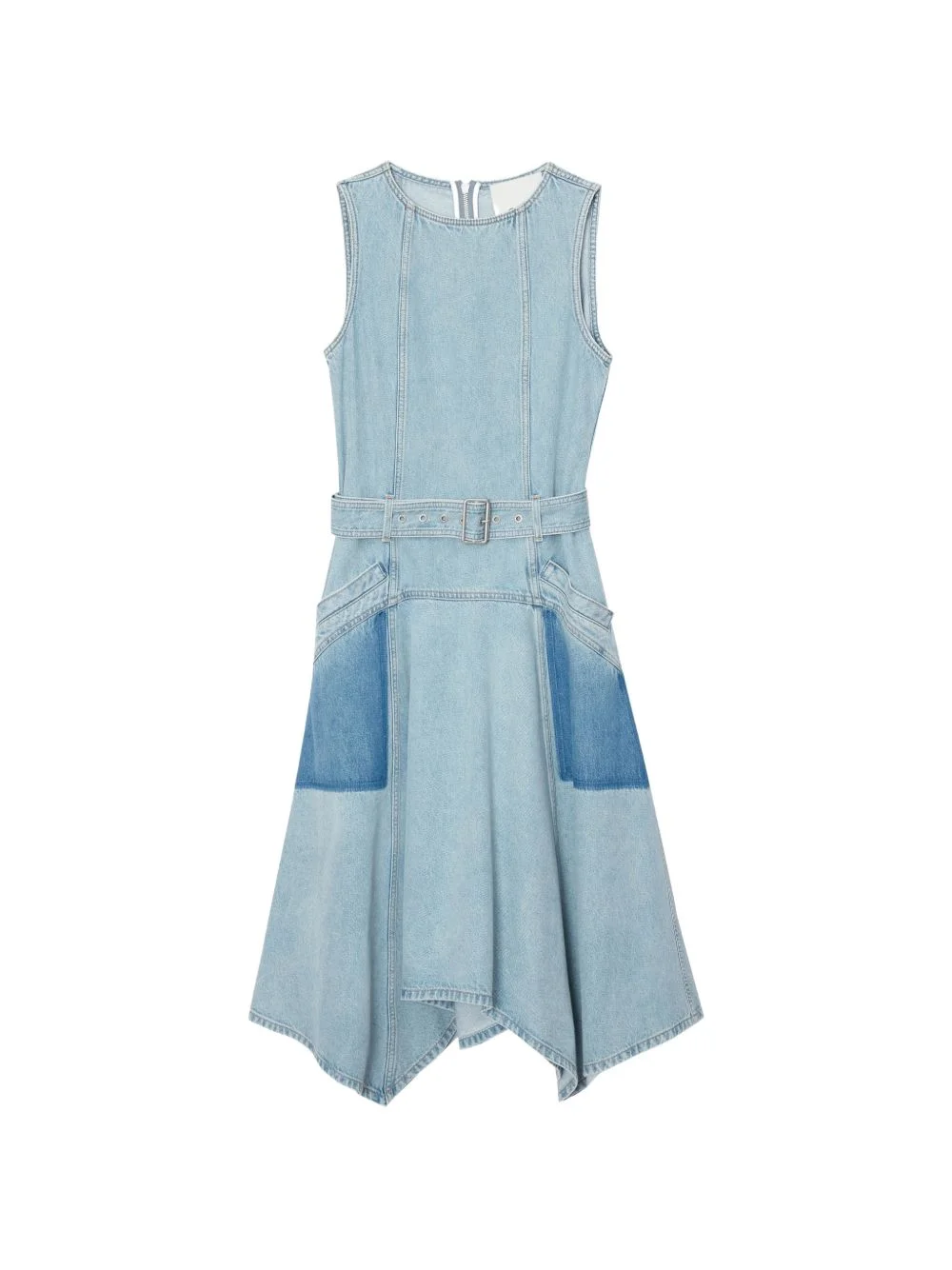 patchwork belted cotton midi dress Highlights - Light blue - Cotton - Panelled design - Belt - Side jetted pockets - Asymmetric hem Imported Composition Cotton 100% Washing instructions Specialist Cleaning