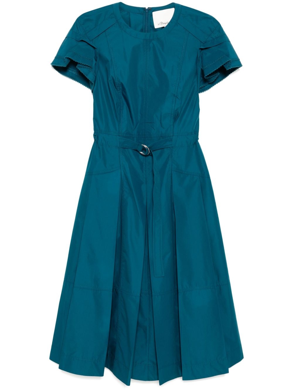petal-sleeves midi dress Highlights - Teal blue - Concealed rear hook and zip fastening - Two side inset pockets - Adjustable waist strap Imported Composition Cotton 70%, Polyester 30% SIZE & FIT Model measurements Height 5 ft 10 in(1.77 m) Bust/Chest 31.49 in(80 cm) Hips 35.43 in(90 cm) Waist 25.19 in(64 cm) FittingInformation Designed for a slim fit that sits just away from the body offering a close yet comfortable fit The belt offers adjustability for fitted preferences Made from a midweight non-stretch fabric