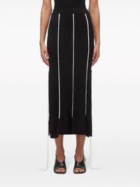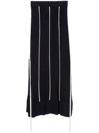 pipe-trim knitted midi skirt Highlights - Midnight blue/ivory white - Knitted construction - High-waisted - Piped-trim detailing - Side slits - Calf-length - Straight hem Imported Composition Viscose 89%, Polyamide 11%