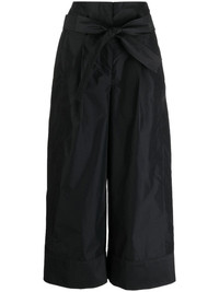 pleat-detail belted cropped trousers black cotton blend pleat detailing high-waisted detachable belt belt loops concealed front fastening two side slit pockets rear button-fastening pocket cropped leg Imported Composition Cotton 70%, Polyester 30% SIZE & FIT Model measurements Height 5 ft 10 in(1.77 m) Bust/Chest 31.49 in(80 cm) Hips 35.43 in(90 cm) Waist 25.19 in(64 cm) FittingInformation Designed with a wide-leg cut, these trousers allow for a close fit at the waist and offer a loose and roomy fit over the leg The tie fastening gives an adaptable and personalised fit Made from a midweight non-stretch fabric Washing instructions Machine Wash