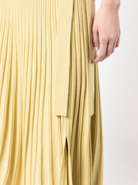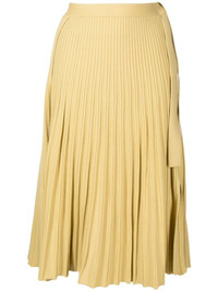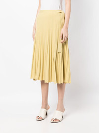 pleated wool-blend midi skirt lemon yellow wool blend fully pleated high waist side tie fastening knee-length Imported Composition Wool 57%, Acrylic 25%, Polyamide 16%, Elastane 2% SIZE & FIT Model measurements Height 5 ft 10 in(1.78 m) Bust/Chest 33.46 in(85 cm) Hips 35.43 in(90 cm) Waist 24.4 in(62 cm) Measurement HIPS 44.09 in(112 cm) LENGTH 28.54 in(72.5 cm) WAIST 21.25 in(54 cm) FittingInformation This midi-length skirt is intended to be worn just below the waist Made from a midweight non-stretch fabric, this piece offers minimal elasticity when worn Washing instructions Dry Clean Only