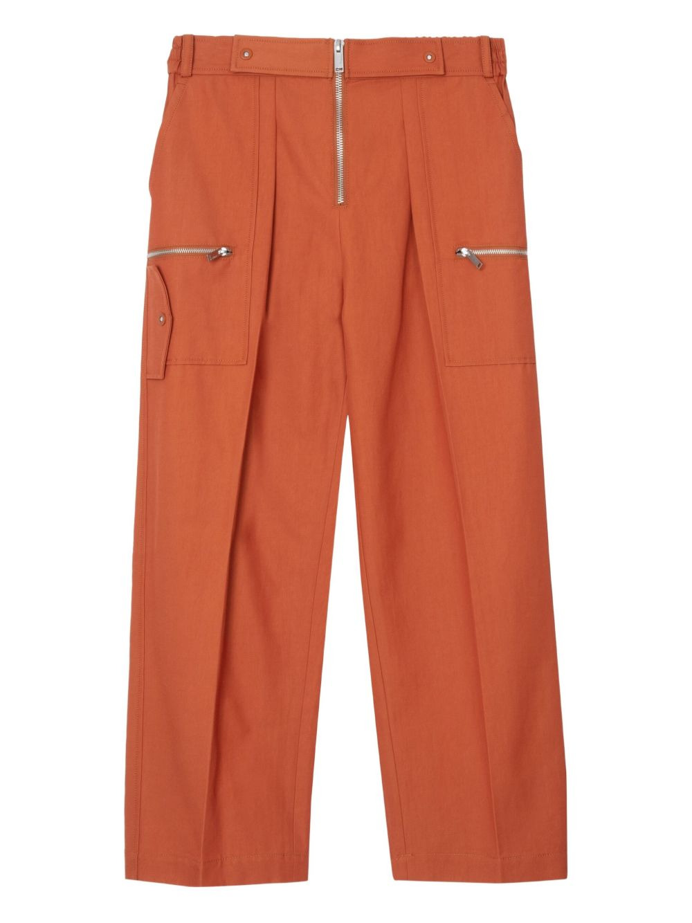 pleated zip-fly trousers Highlights - Burnt orange - Pleated front - Zip fly - Side inset pockets - Side flap pocket - Rear jetted pocket Imported Composition Cotton 55%, Viscose 45% Washing instructions Dry Clean Only