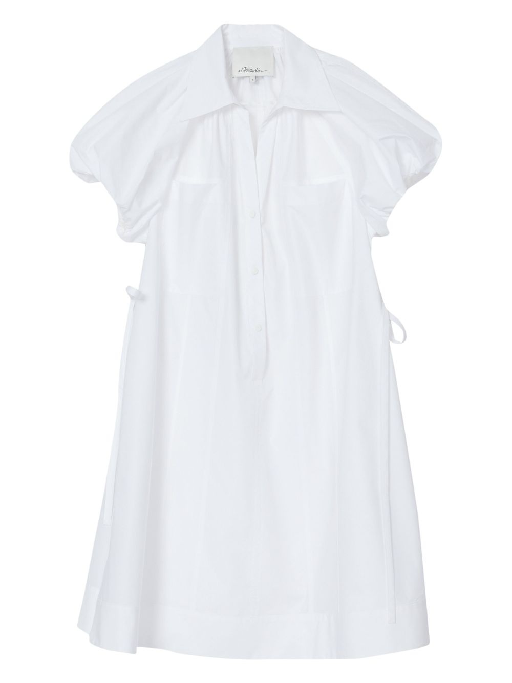 poplin midi dress Highlights - White - Concealed front button fastening - Short puff sleeves - Two side slit pockets Imported Composition Cotton 70%, Recycled Polyester 30%