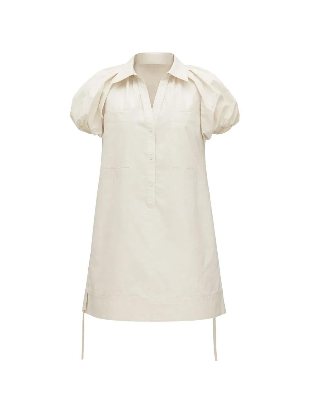 puff-sleeve mini dress Highlights - Ivory - V-neck - Side tie fastening - Polo collar - Short sleeves Imported Composition Body: Cotton 70%, Recycled Polyester 30% Washing instructions Dry Clean Only