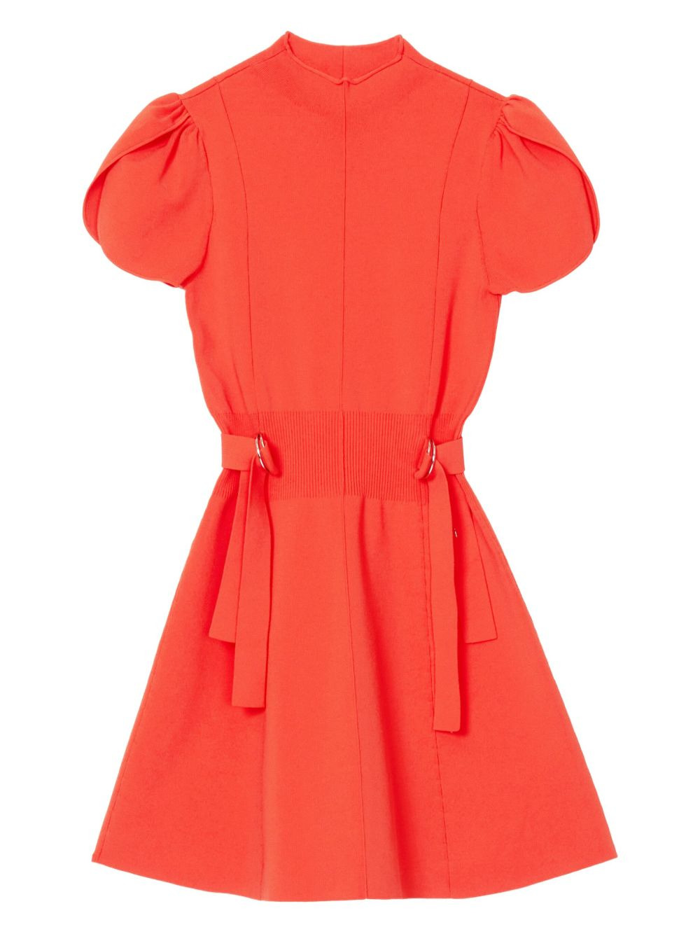 ribbed-knit mini dress Highlights - Red - Adjustable side straps - Mock neck - Short puff sleeves Imported Composition Viscose 83%, Polyester 17% Washing instructions Dry Clean Only