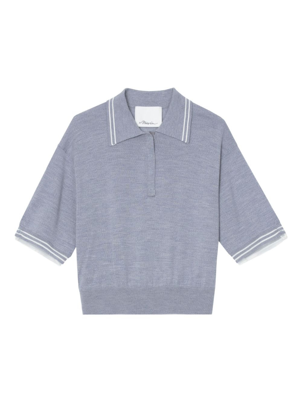 short-sleeve merino T-shirt Highlights - Light grey - Short sleeves - Ribbed hem - Polo collar Imported Composition Merino 100% Washing instructions Dry Clean Only