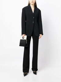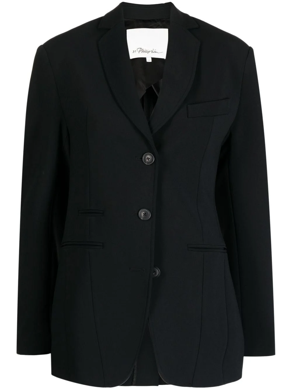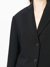 single-breasted tailored blazer Highlights - Black - Notched lapels - Front button fastening - Long sleeves - Front welt pocket - Buttoned cuffs - Buttoned central rear vent - Straight hem Imported Composition Viscose 66%, Acetate 32%, Spandex/Elastane 2% SIZE & FIT Model measurements Height 5 ft 11 in(1.8 m) Bust/Chest 28.34 in(72 cm) Hips 35.43 in(90 cm) Waist 23.62 in(60 cm) FittingInformation Designed for a slim fit that sits just away from the body offering a close yet comfortable fit The internal shoulder pads offer a structured shape Made from a midweight stretch fabric, this piece offers elasticity and flexibility when worn This piece fits true to size – take your usual size