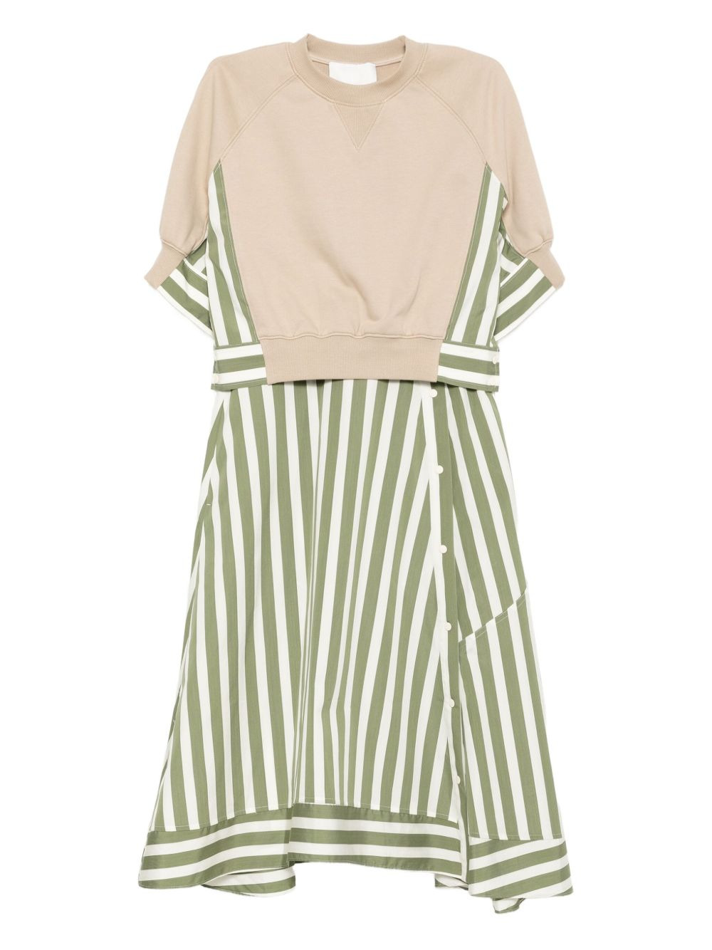 striped combo dress Highlights - Dtop - Taupe - Two side button fastening - Buttoned-cuff sleeves - Crew neck - Dress - Ecru - Front button fastening - Two side seam pockets - Sleeveless Imported Composition Cotton 100% SIZE & FIT Model measurements Height 5 ft 10 in(1.77 m) Bust/Chest 30.7 in(78 cm) Hips 35.82 in(91 cm) Waist 21.25 in(54 cm) FittingInformation Designed for a close fit at the chest and waist with a loose fit at the hip Made from a midweight non-stretch fabric Washing instructions Dry Clean Only