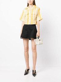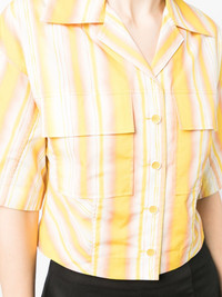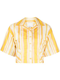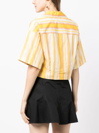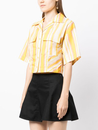 striped cropped cotton shirt Highlights - Lemon yellow - Multicolour - Cotton - Multi-way stripe pattern - Peak lapels - V-neck - Cropped - Front button fastening - Short sleeves - Two chest flap pockets - Straight hem Imported Composition Cotton 100% SIZE & FIT Model measurements Height 5 ft 11 in(1.8 m) Bust/Chest 28.34 in(72 cm) Hips 35.43 in(90 cm) Waist 23.62 in(60 cm) FittingInformation Designed to be unstructured, offering a loose fit throughout Cropped in length Made from a lightweight non-stretch fabric This piece fits large – take one size down
