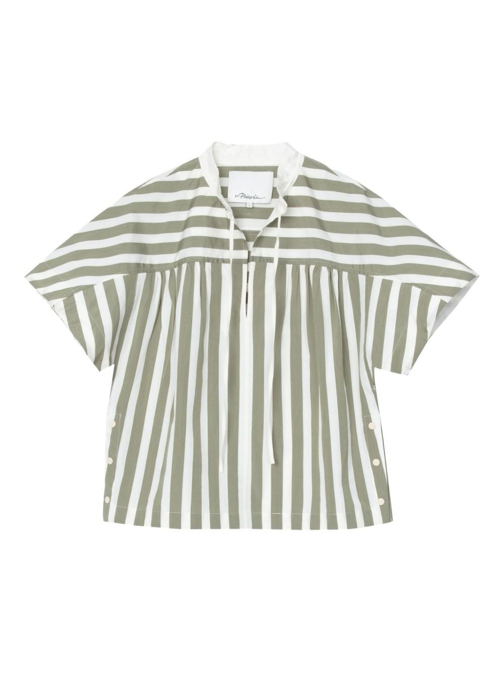 striped tie-neck top Highlights - Sage green and white - Stripes - Tie neck - Short sleeves Imported Composition Cotton 91%, Silk 9% Washing instructions Dry Clean Only