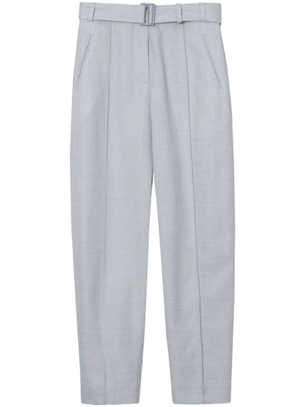 tailored tapered trousers Highlights - Light blue - Linen blend - Tapered leg - Belt loops - Belted waist - Two side inset pockets - Two rear button-fastening jetted pockets - Ankle-length Imported Composition Viscose 86%, Linen/Flax 14%