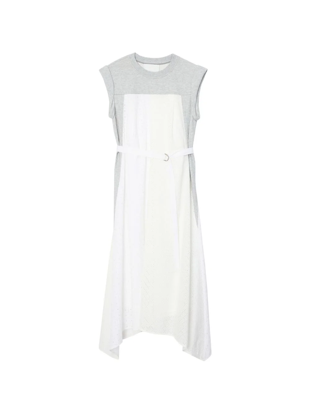 Terry eyelet belted midi dress Highlights - White and grey - Eyelet detail - Belted - Sleeveless - Round neck - Panelled design Imported Composition Cotton 100% Washing instructions Specialist Cleaning
