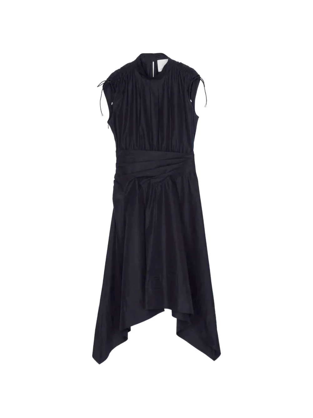 tie-waist asymmetric dress Highlights - Midnight blue - Gathered detail - Mock neck - Tie fastening - Asymmetric hem - Pleated detail Imported Composition Cotton 70%, Polyester 30% Washing instructions Read Manufacturer Guidelines