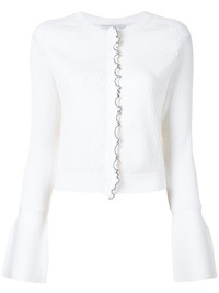 tulip sleeve ribbed cardigan Who doesn't love cardigans? Not you and not us, which is why we know that you'll be just as pleased to see this tulip sleeve ribbed cardigan as we are. Thank you for making our knitwear dreams come true 3.1 Phillip Lim. Highlights - Antique white - Wool-blend - Long tulip sleeves - Ribbed - Round neck - Concealed front fastening - Curved hem - Contrasting ruffle trim Imported Composition Wool 69%, Nylon 31% SIZE & FIT Model measurements Height 5 ft 10 in(1.77 m) Bust/Chest 31.49 in(80 cm) Hips 34.64 in(88 cm) Waist 23.22 in(59 cm) FittingInformation This piece fits true to size. We recommend you get your regular size Cut for a slim fit Made with a mid-weight stretch fabric Washing instructions Dry Clean Only