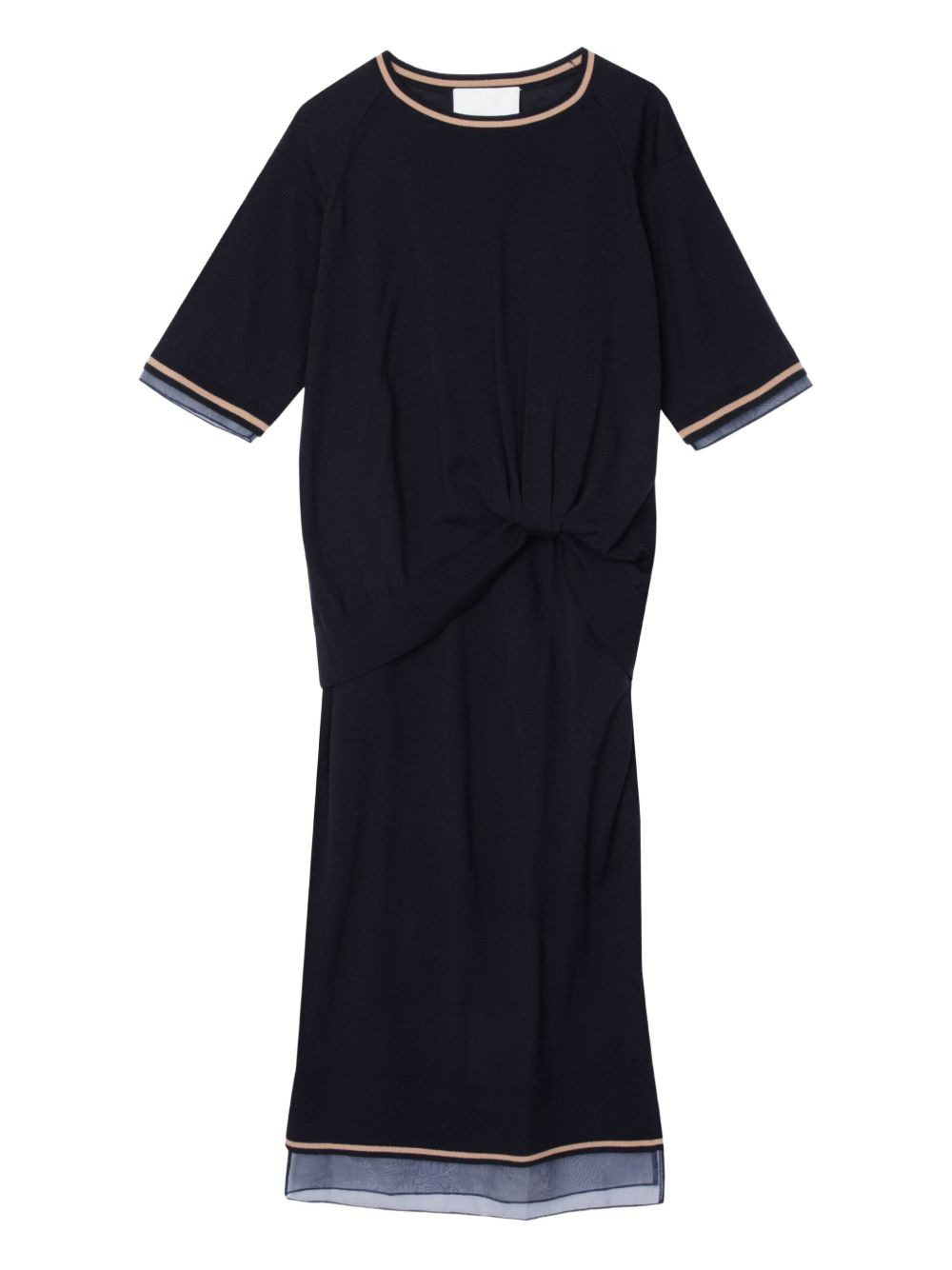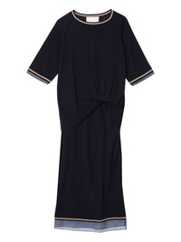 twist-detail wool dress Highlights - Navy blue - Twist detail at the waist - Short sleeves - Sheer hem - Contrasting trim Imported Composition Merino 100% Washing instructions Dry Clean Only