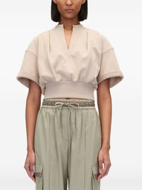 V-neck cotton T-shirt Highlights - Sand beige - Cotton - V-neck - Short sleeves - Straight hem - Cropped Imported Composition Cotton 100%