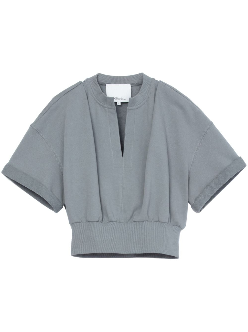 V-neck cotton T-shirt Highlights - Beluga grey - Cotton - V-neck - Short sleeves - Straight hem - Cropped Imported Composition Cotton 100%