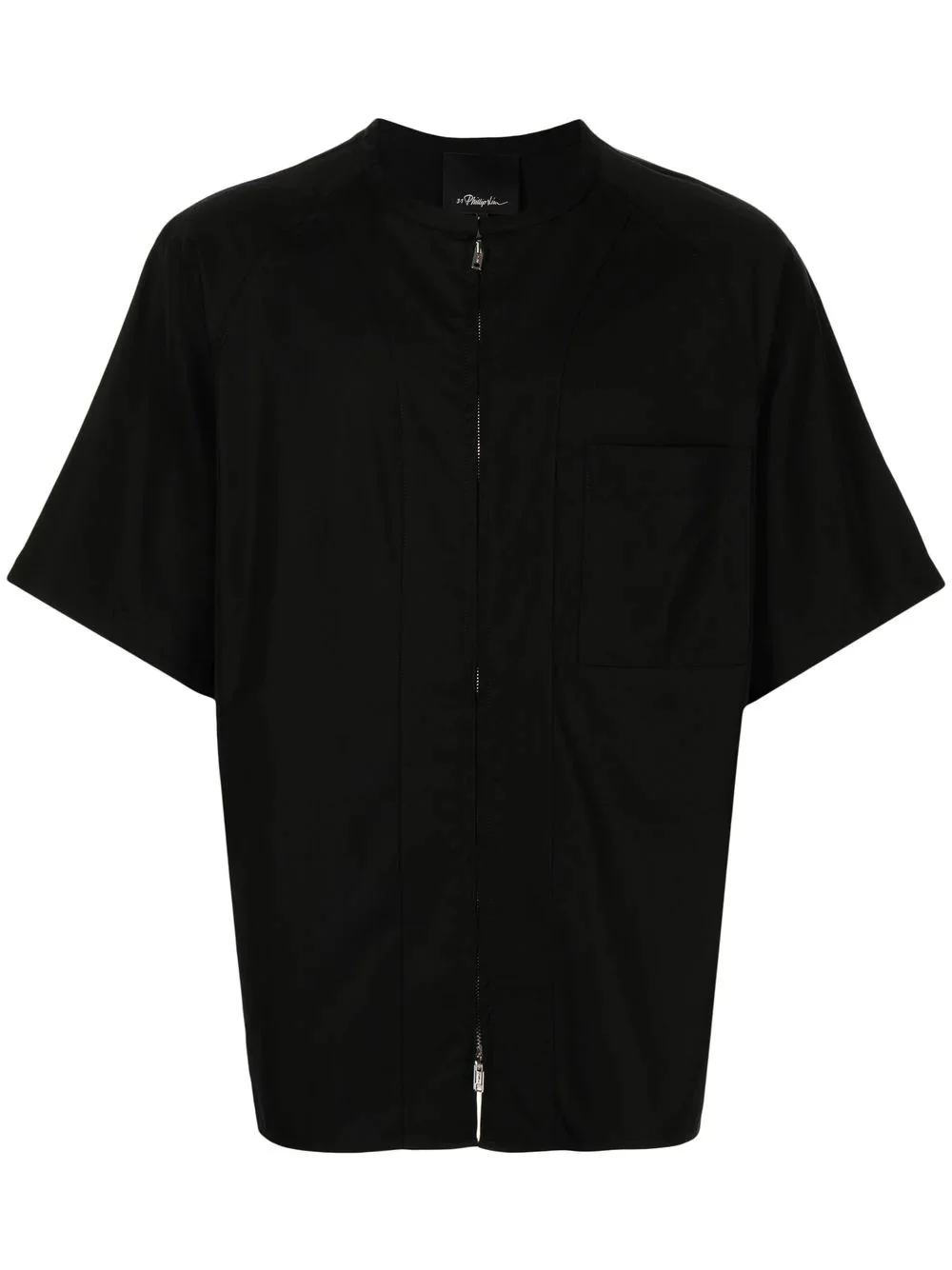 zipped baseball shirt zipped baseball shirt from 3.1 PHILLIP LIM featuring black, cotton blend, collarless, front zip fastening, short sleeves, chest patch pocket and straight hem. Imported Composition Viscose 60%, Cotton 40% SIZE & FIT Model measurements Height 6 ft 2 in(1.87 m) Bust/Chest 34.25 in(87 cm) Hips 36.22 in(92 cm) Waist 29.52 in(75 cm) FittingInformation This piece fits true to size. We recommend you get your regular size Cut for a loose fit Made with a mid-weight stretch fabric Washing instructions Dry Clean Only