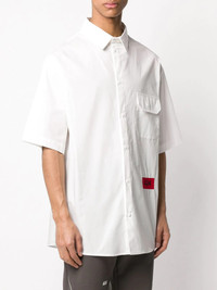 button down flap pocket shirt White cotton button down flap pocket shirt from 424 featuring a front button fastening, short sleeves, a patch pocket at the chest, a boxy fit, a long length and a straight hem. Made in Italy Composition Cotton 100% SIZE & FIT Model measurements Height 6 ft 2 in(1.87 m) Bust/Chest 38.18 in(97 cm) Hips 36.61 in(93 cm) Waist 29.13 in(74 cm) FittingInformation This piece fits true to size. We recommend you get your regular size Cut for an oversized fit Made with a mid-weight non-stretch fabric Washing instructions Machine Wash