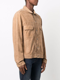 button-up leather jacket beige goatskin-blend classic collar front button fastening long sleeves two front flap pockets Made in Italy Composition Outer: Goat Skin 100% Lining: Cupro 100% SIZE & FIT Model measurements Height 6 ft 1 in(1.86 m) Bust/Chest 36.61 in(93 cm) Hips 36.61 in(93 cm) Waist 29.92 in(76 cm) Washing instructions Specialist Cleaning
