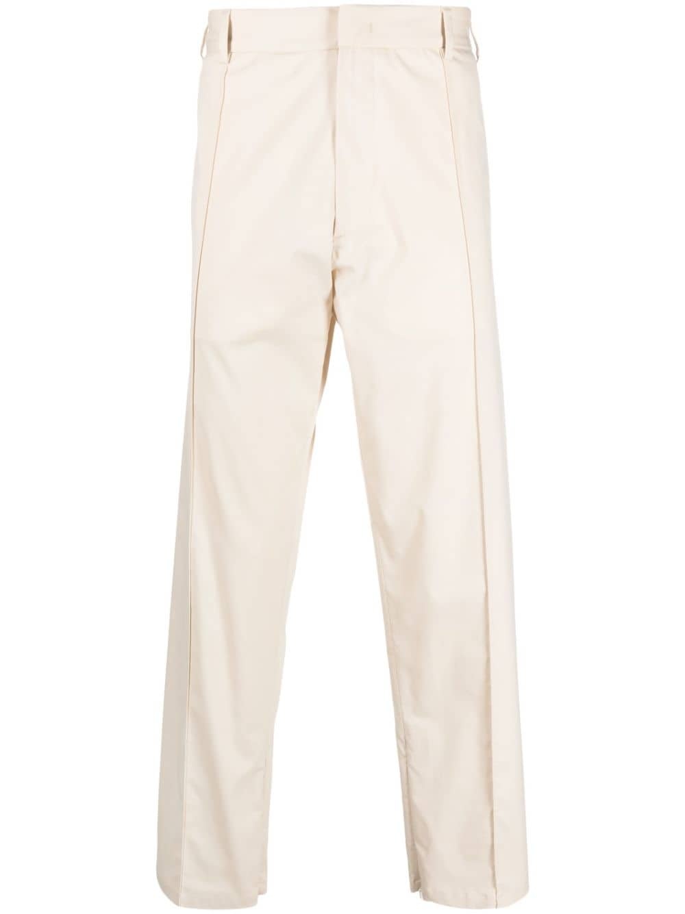 cotton straight-leg trousers Highlights - Light beige - Cotton blend - Concealed fly and button fastening - Elasticated waistband - Straight leg Made in Italy Composition Outer: Cotton 65%, Polyester 31%, Spandex/Elastane 4% Lining: Cotton 100% SIZE & FIT Model measurements Height 6 ft 2 in(1.87 m) Bust/Chest 38.18 in(97 cm) Hips 36.61 in(93 cm) Waist 29.13 in(74 cm) FittingInformation Designed for a tapered leg, offering a loose unrestricted fit over the leg with a closer fit towards the ankle The partially elasticated waistband offers increased movement and comfort at the waist Made from a midweight stretch fabric, this piece offers elasticity and flexibility when worn This piece fits true to size – take your usual size Washing instructions Machine Wash