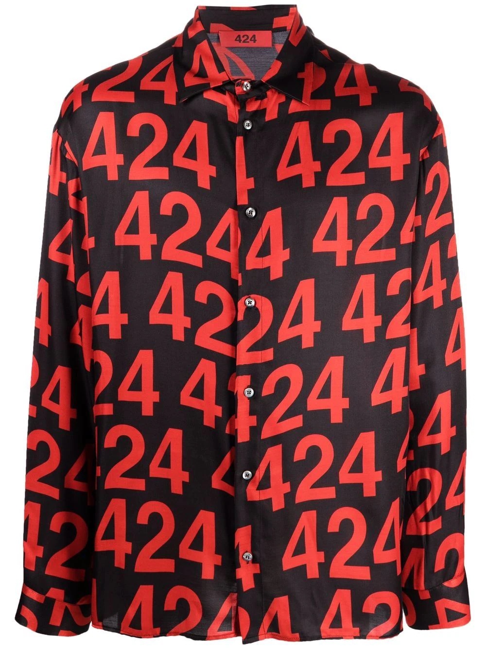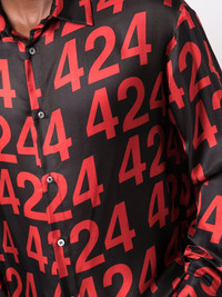 logo button-down shirt black/red all-over logo embroidery button-down collar long sleeves Made in Italy Composition Viscose 75%, Silk 25% SIZE & FIT Model measurements Height 6 ft 1 in(1.86 m) Bust/Chest 36.61 in(93 cm) Hips 36.61 in(93 cm) Waist 29.92 in(76 cm) Measurement CHEST 48.81 in(124 cm) SLEEVE LENGTH 23.62 in(60 cm) Shoulder Width 22.04 in(56 cm) LENGTH 31.88 in(81 cm) WAIST 48.81 in(124 cm) FittingInformation This piece fits true to size. We recommend you get your regular size Cut for a loose fit Made with a lightweight non-stretch fabric Washing instructions Machine Wash