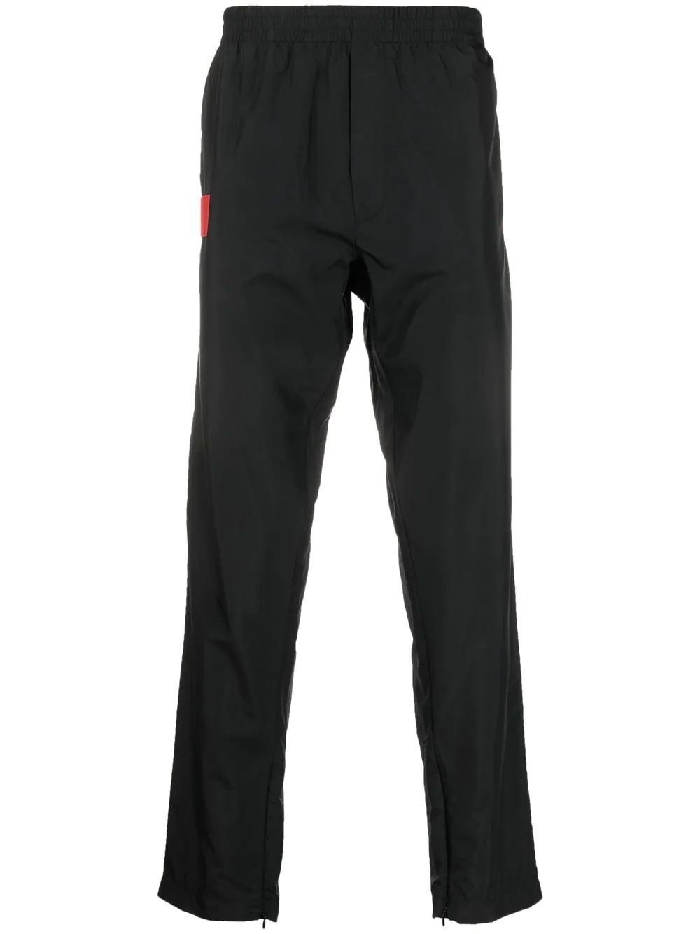 logo-patch lightweight track pants black lightweight construction logo patch to the side straight leg elasticated waistband slip pockets to the sides Made in Italy Composition Polyamide 58%, Polyester 42% SIZE & FIT Model measurements Height 6 ft 1 in(1.86 m) Bust/Chest 36.61 in(93 cm) Hips 37 in(94 cm) Waist 28.74 in(73 cm) FittingInformation This piece fits true to size. We recommend you get your regular size Cut for a slim fit Made with a lightweight non-stretch fabric