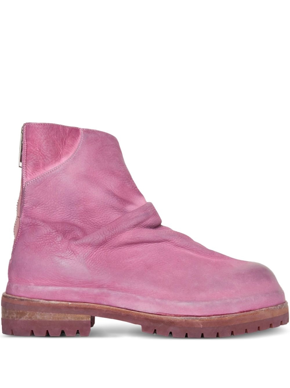 Marathon "Pink" boots Highlights - Rose pink - Rear zip fastening - Distressed finish - Ankle-length - Round toe - Ridged rubber sole Made in Italy Composition Outer: Calf Leather 100% Lining: Calf Leather 100% Sole: Rubber 100%