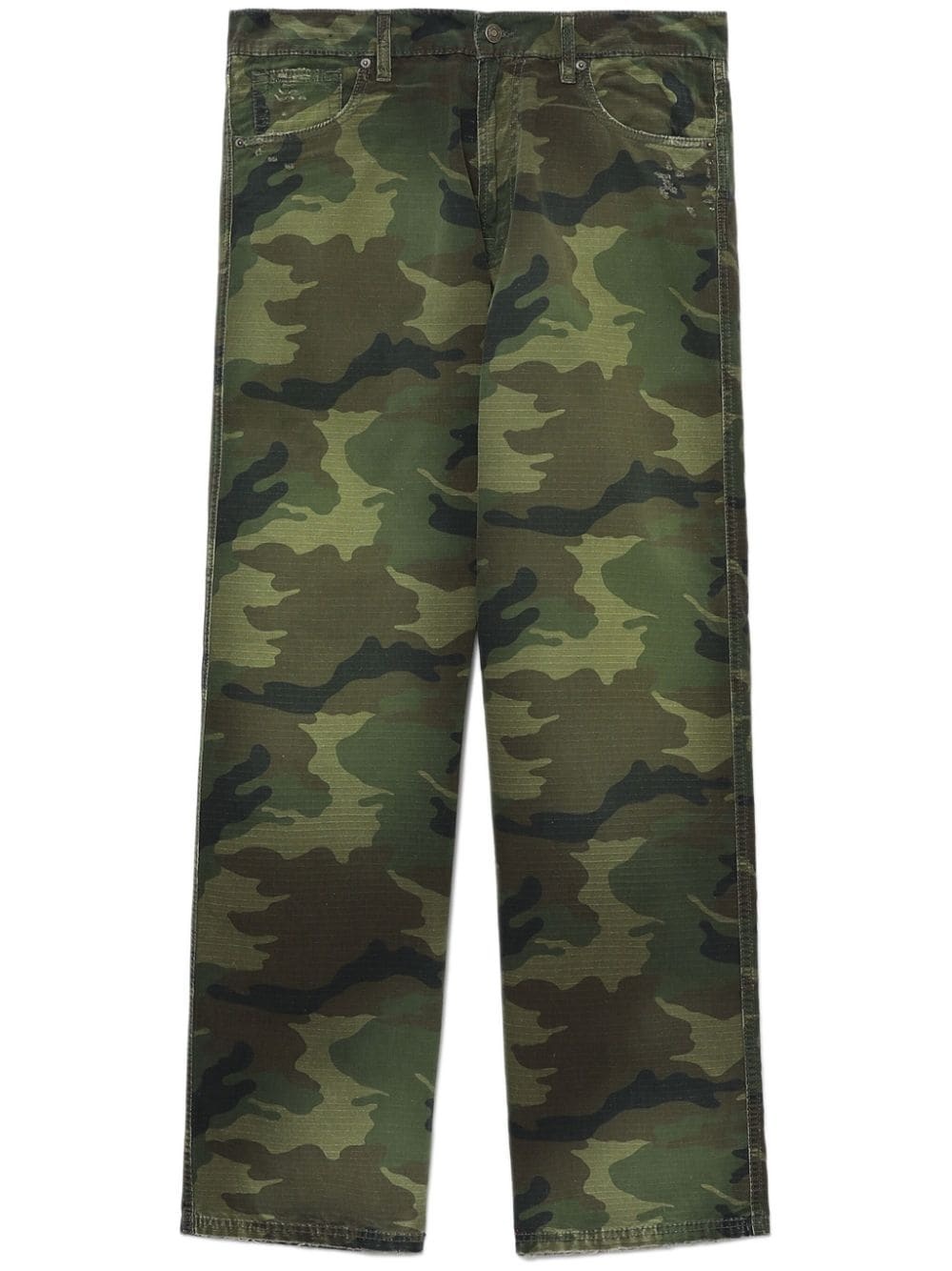 military print cotton trousers Highlights - Green - Cotton - Camouflage pattern - Straight leg - Classic five pockets - Belt loops - Logo patch to the rear - Concealed top-zip fastening Made in Italy Composition Cotton 100%