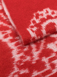 paisley pattern scarf red / white mohair blend paisley print fringed edge knitted construction Made in Italy Composition Acrylic (Fiber) 47%, Mohair 27%, Polyamide 26% SIZE & FIT Model measurements Height 6 ft 2 in(1.89 m) Bust/Chest 35.43 in(90 cm) Hips 36.61 in(93 cm) Waist 28.74 in(73 cm) Measurement LENGTH 60.62 in(154 cm) WIDTH 25.59 in(65 cm) Washing instructions Hand Wash
