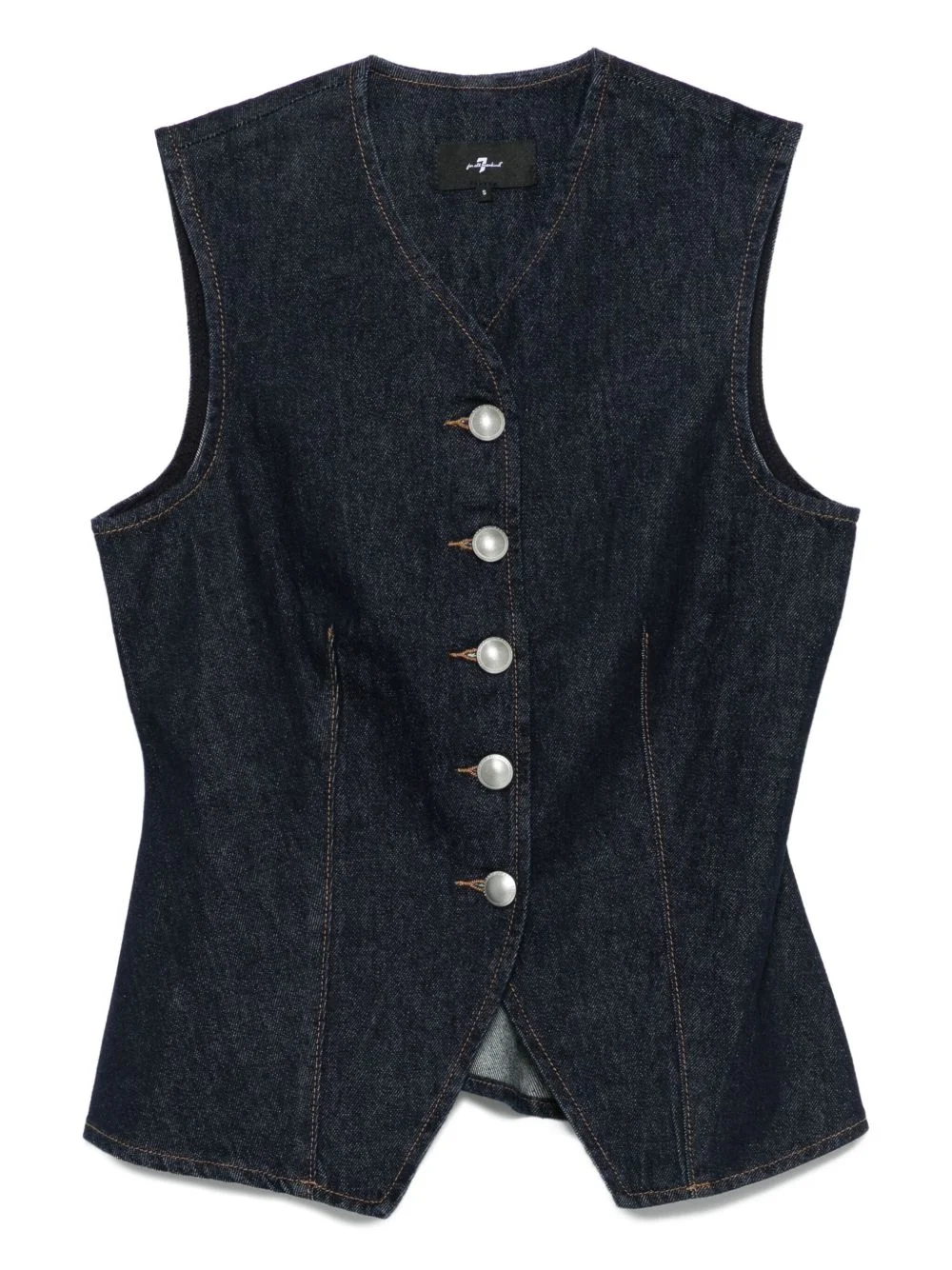 Lady button-fastening denim waistcoat Highlights - Blue - Sleeveless - Button fastening - Seam details Imported Composition Cotton 99%, Elastane 1% Washing instructions Machine Wash