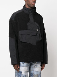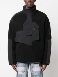Bonded Axis panelled fleece jacket Crafted with bonded 420gm fleece to enhance warmth, the Bonded Axis jacket by A-COLD-WALL* boasts a panelled, high neck silhouette made unique with asymmetric patch pockets and an oversized logo on the rear. Highlights - Black - Panelled design - Pullover design - Fleece texture - High neck - Concealed front fastening - Logo patch to the front - Long sleeves - Logo patch at the sleeve - Two front patch pockets - Straight hem - Drawstring hem Imported Composition Polyamide 100%, Polyester 100% SIZE & FIT Model measurements Height 6 ft 0 in(1.84 m) Bust/Chest 36.22 in(92 cm) Hips 35.43 in(90 cm) Waist 26.77 in(68 cm) FittingInformation Designed to be unstructured, offering a loose fit throughout The internal drawstring at the hem allows for fitted preferences Made from a midweight non-stretch fabric, this piece offers minimal elasticity when worn This piece fits true to size – take your usual size Washing instructions Machine Wash