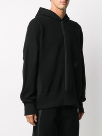concealed zipped hoodie black cotton mix concealed front zip fastening long sleeves classic hood silver-tone logo plaque Imported Composition Cotton 67%, Polyamide 29%, Spandex/Elastane 4% SIZE & FIT Model measurements Height 6 ft 2 in(1.89 m) Bust/Chest 37.79 in(96 cm) Hips 37 in(94 cm) Waist 29.92 in(76 cm) FittingInformation This piece fits true to size. We recommend you get your regular size Cut for a loose fit Made with a mid-weight stretch fabric Washing instructions Machine Wash
