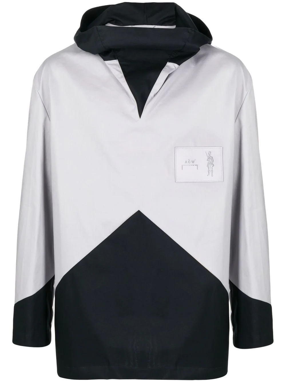 geometric panelled windbreaker black/grey cotton geometric panelled design logo patch at the sleeve logo print to the rear classic hood long sleeves Made in United Kingdom Composition Cotton 100% SIZE & FIT Model measurements Height 6 ft 3 in(1.9 m) Bust/Chest 35.03 in(89 cm) Hips 36.61 in(93 cm) Waist 29.13 in(74 cm) FittingInformation This piece fits true to size. We recommend you get your regular size Cut for a loose fit Made with a mid-weight non-stretch fabric Washing instructions Dry Clean Only