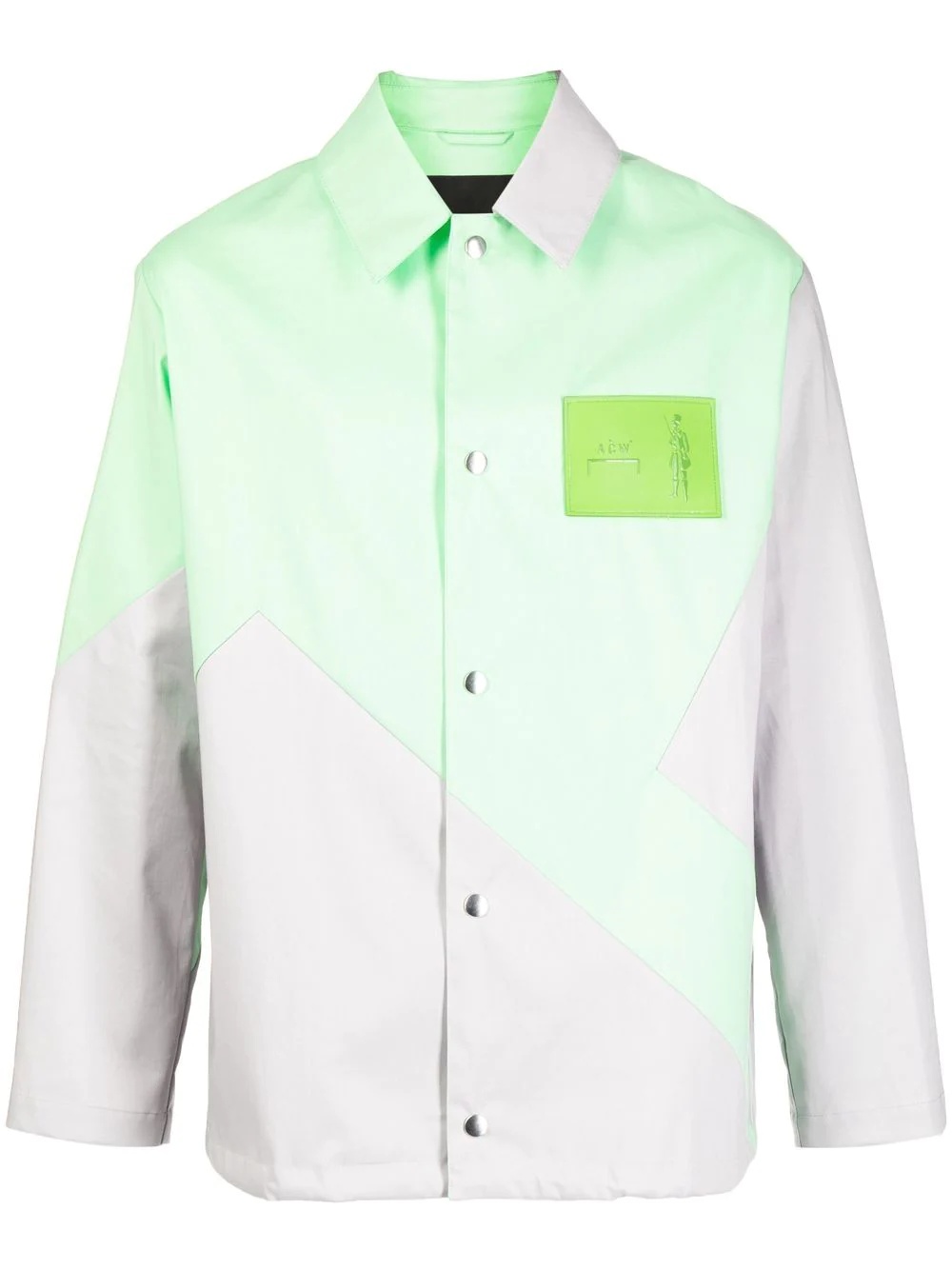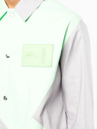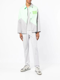 geometric panelled shirt grey/green cotton geometric panelled design logo patch at the chest front press-stud fastening classic collar long sleeves straight hem Made in United Kingdom Composition Cotton 100% SIZE & FIT Model measurements Height 6 ft 3 in(1.9 m) Bust/Chest 35.03 in(89 cm) Hips 36.61 in(93 cm) Waist 29.13 in(74 cm) FittingInformation This piece fits large – you might want to get one size down Cut for a loose fit Made with a mid-weight non-stretch fabric Washing instructions Machine Wash