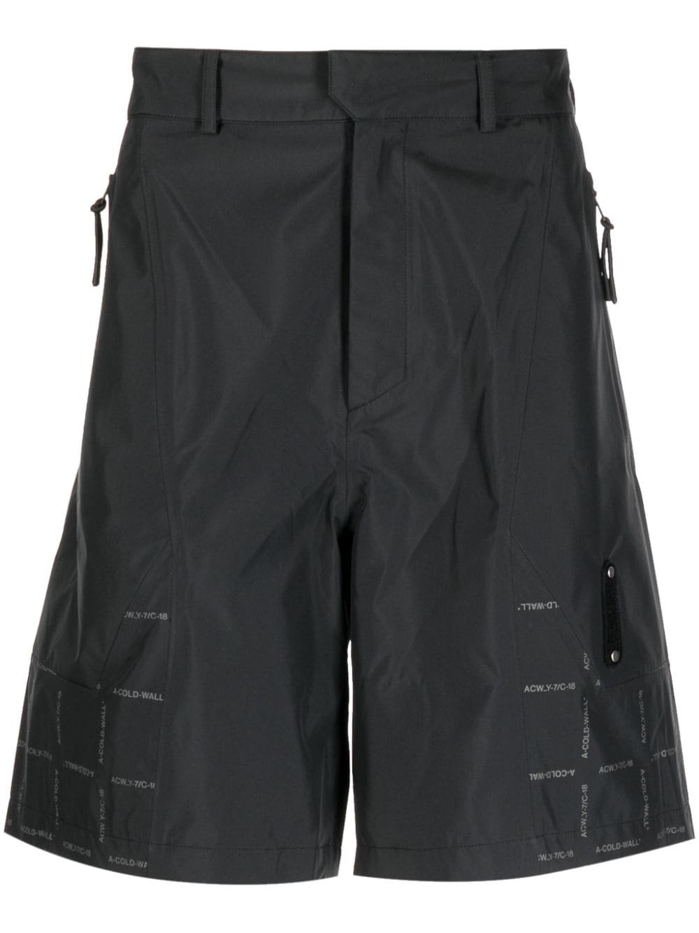 Grisdale Storm cargo shorts A-COLD-WALL* blends streetwear influence with utilitarian appeal, as shown by these Grisdale Storm shorts. Featuring multiple zipped pockets for added practicality, they boast a technical waterproof, windproof and breathable construction that proves the functional purpose of the design. Highlights - Black - Logo print at the leg - Waterproof - Windproof - Belt loops - Concealed front fastening - Two side zip-fastening pockets - Two rear zip-fastening pockets - Knee-length Imported Composition Outer: Polyester 100% Lining: Polyurethane 100% SIZE & FIT Model measurements Height 6 ft 2 in(1.87 m) Bust/Chest 34.25 in(87 cm) Hips 36.22 in(92 cm) Waist 29.52 in(75 cm) FittingInformation Designed for a straight-leg fit, offering an unrestricted and comfortable fit over the leg Made from a lightweight non-stretch fabric This piece fits true to size – take your usual size Washing instructions Machine Wash