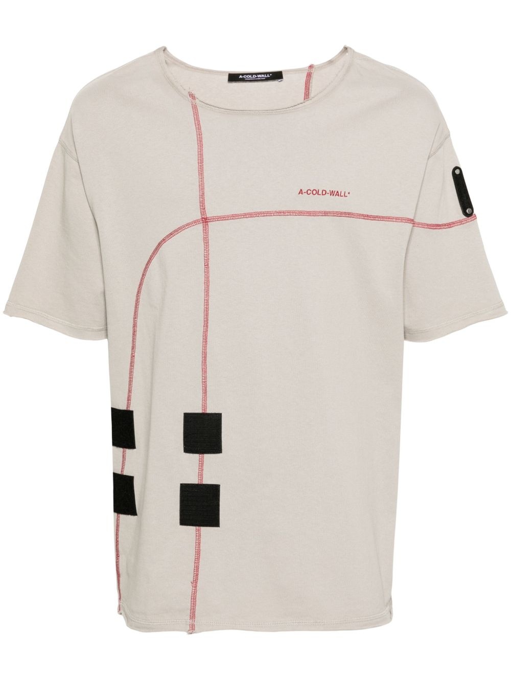 Intersect T-shirt Highlights - Cement grey/black/red - Cotton - Lightweight jersey - Decorative stitching - Decorative touch-strap patches - Embroidered logo at the chest - Logo patch at the sleeve - Raw-cut edge - Round neck - Drop shoulder - Short sleeves - Straight hem Imported Composition Cotton 100% SIZE & FIT Model measurements Height 6 ft 2 in(1.87 m) Bust/Chest 37.79 in(96 cm) Hips 37.79 in(96 cm) Waist 30.31 in(77 cm)